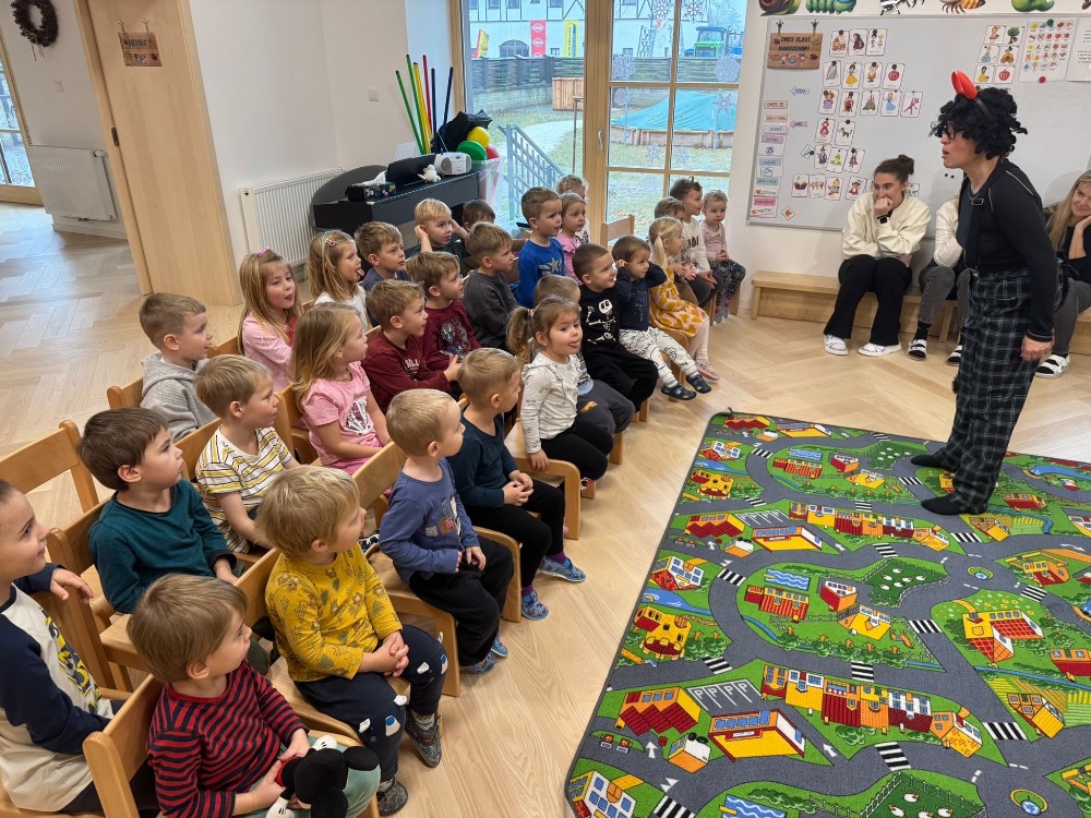 Do naší dětské skupiny zavítalo divadlo Koloběžka s veselou a poučnou pohádkou „Jak se v pekle kujou pikle“. Děti se během představení dozvěděly, že v pekle rozhodně není žádný holubník a že pekelná kamna nikdy nic nepopletou – na rozdíl od čertů, kteří to občas pěkně zamotají.