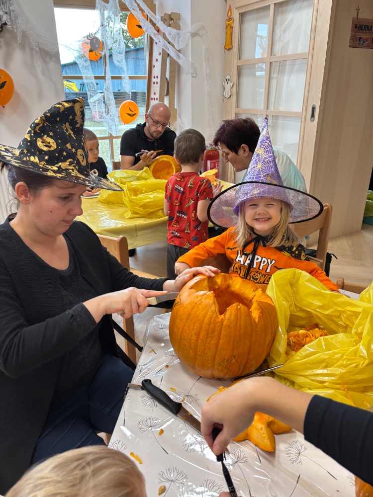 Naše krásné odpoledne začalo krátkým vystoupením dětí, které všem vykouzlilo úsměv na tváři. Poté se rodiče společně s dětmi pustili do tvoření nádherných dýní, které nám teď zdobí naši dětskou skupinku.🍂