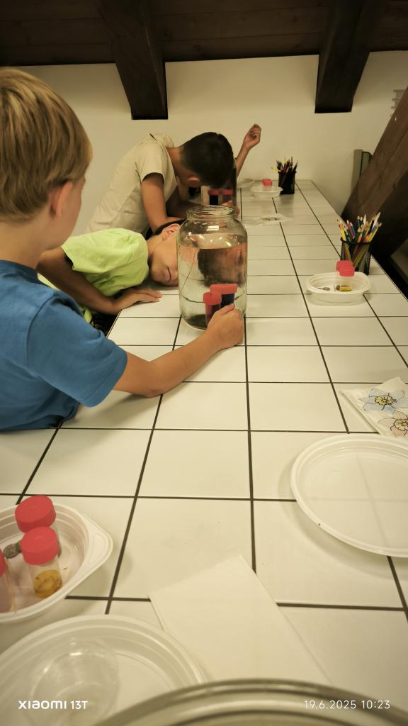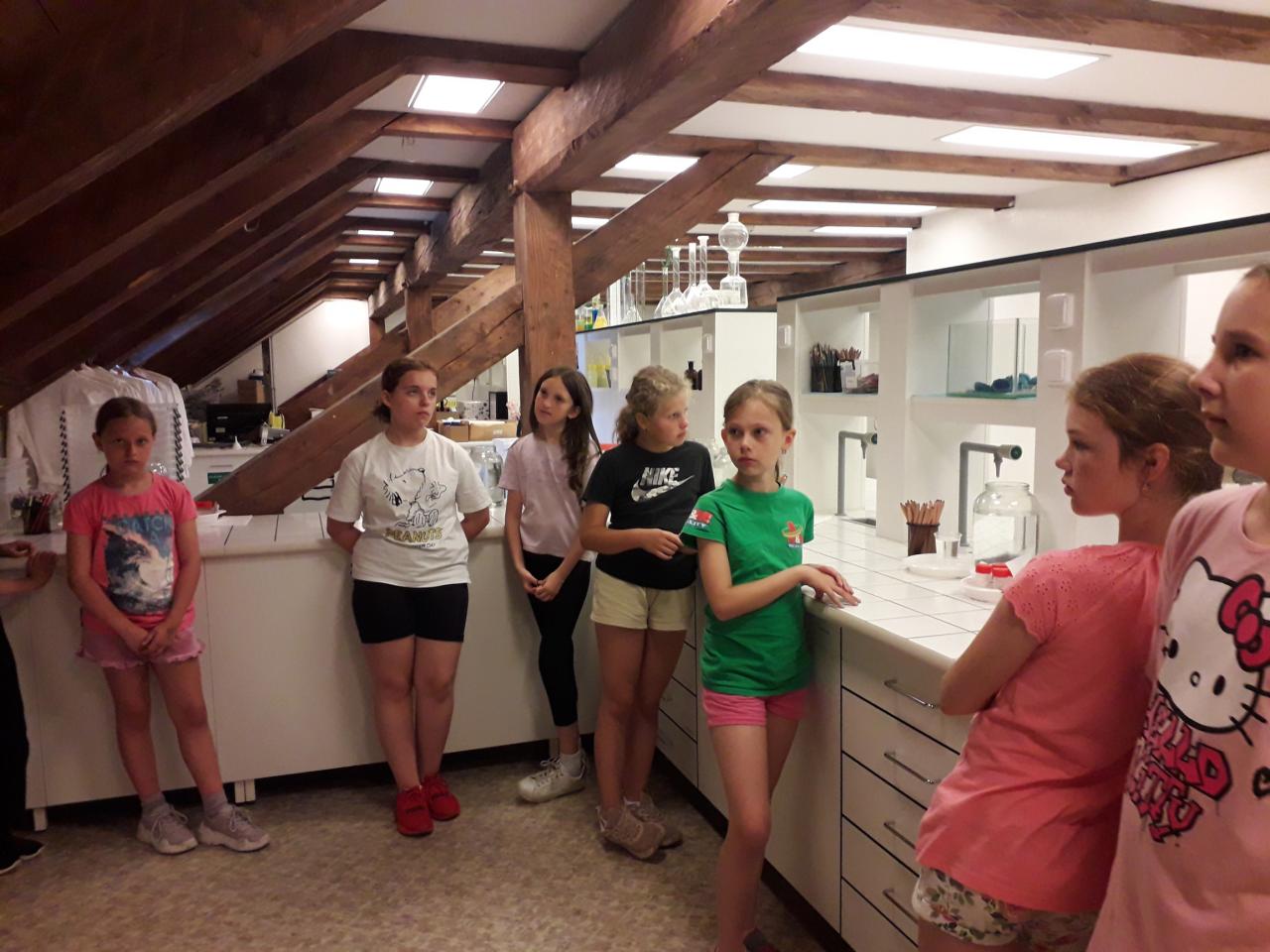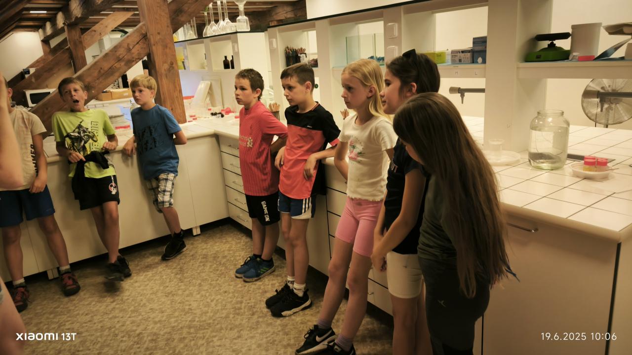 Další zastávkou byla Pevnost poznání, kde jsme se rozdělili do dvou skupin. První se zúčastnila programu Jedinečné vlastnosti vody – v opravdových laboratořích jsme prováděli pokusy s vodou. Druhá skupina mezitím tvořila v kreativních dílničkách. Po výměně si obě skupiny prošly všechny aktivity. Následovala prohlídka interaktivní expozice plné hlavolamů a zajímavostí – podívali jsme se například dovnitř lidského oka nebo mozku.