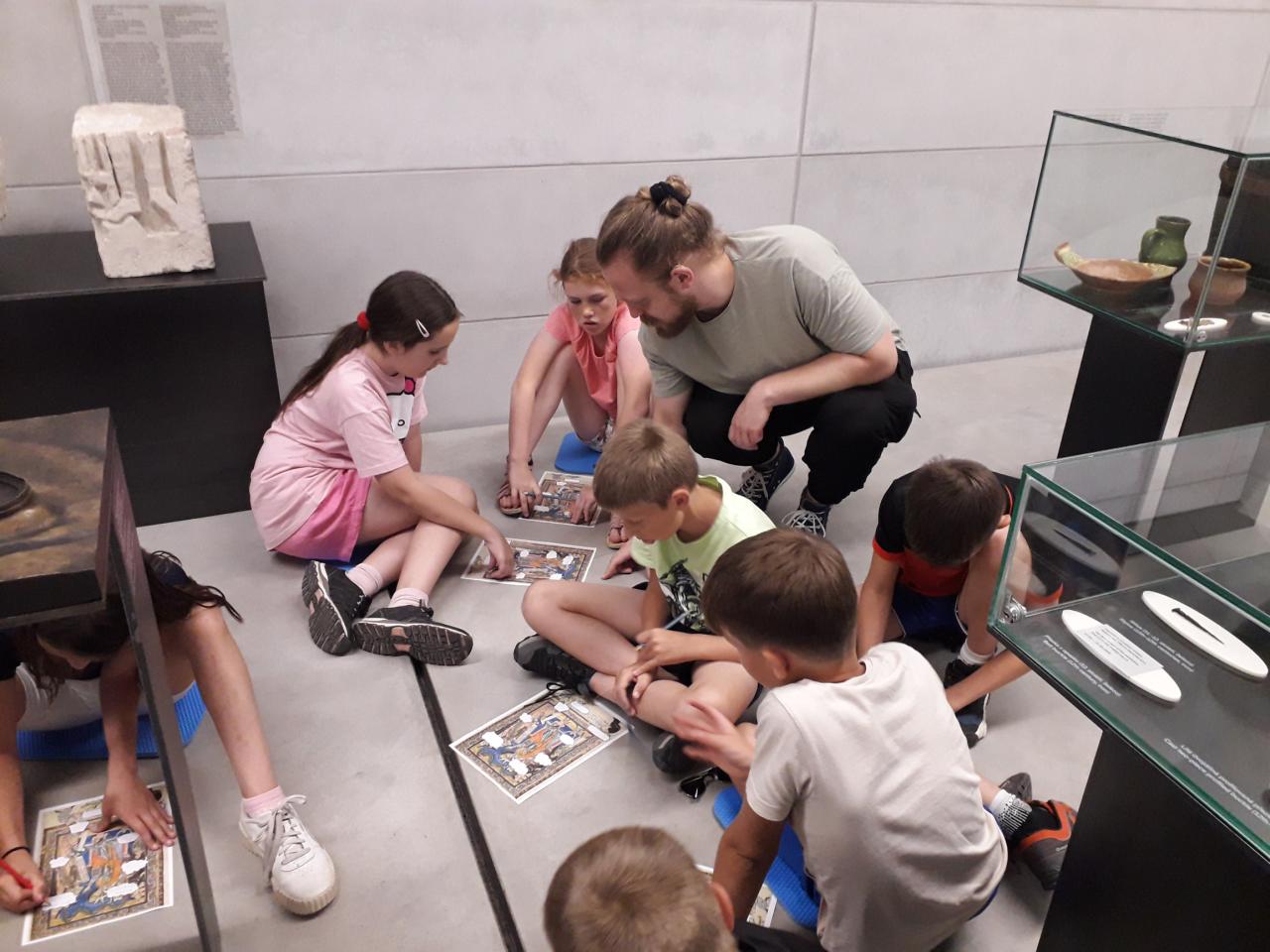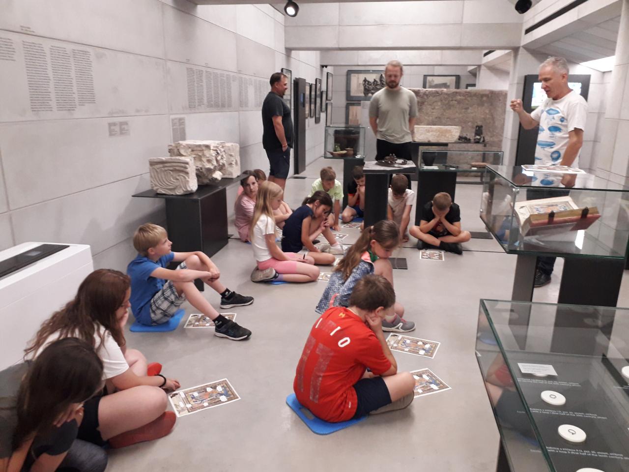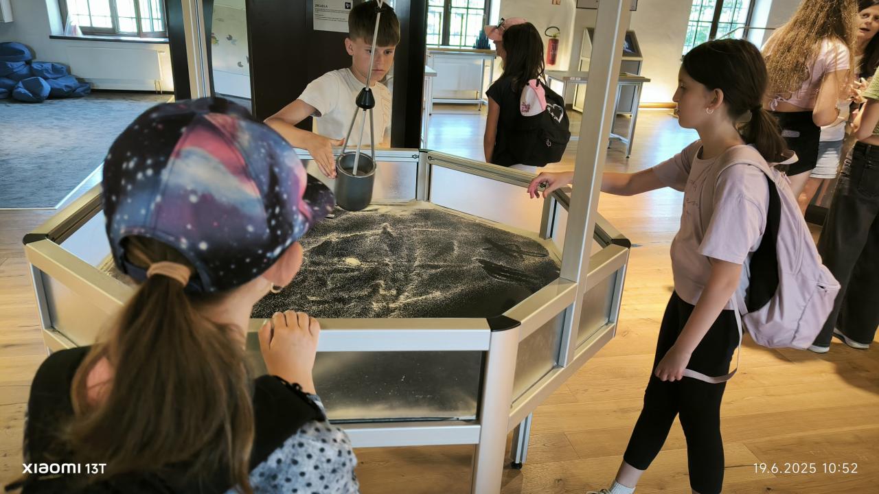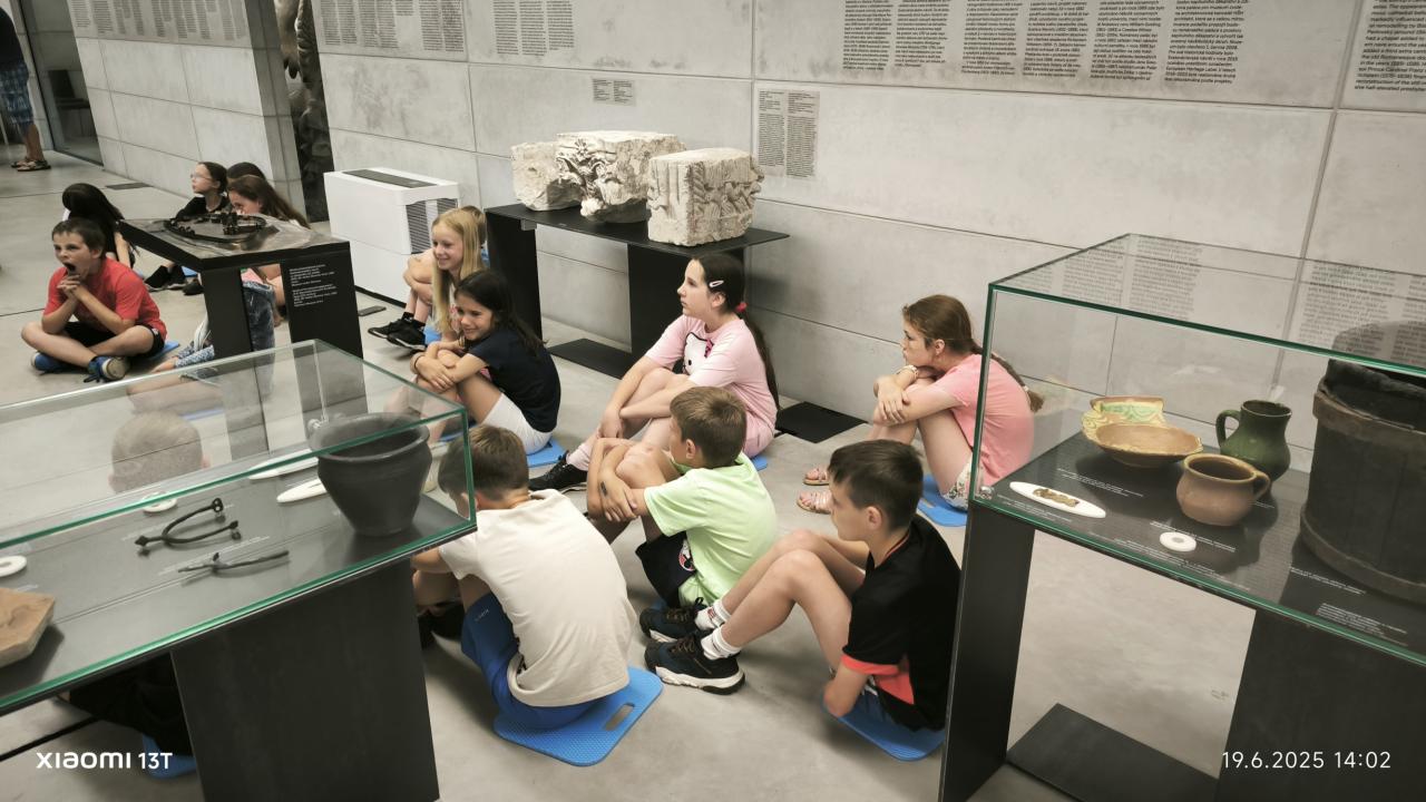 Odpoledne jsme zamířili do Muzea umění, kde nás čekal program Věci z půdy. Seznámili jsme se s exponáty od doby kamenné až po novověk a v každém období jsme si vyzkoušeli zajímavou aktivitu – například pravěký rituál nebo stavbu gotické katedrály z našich vlastních těl.
