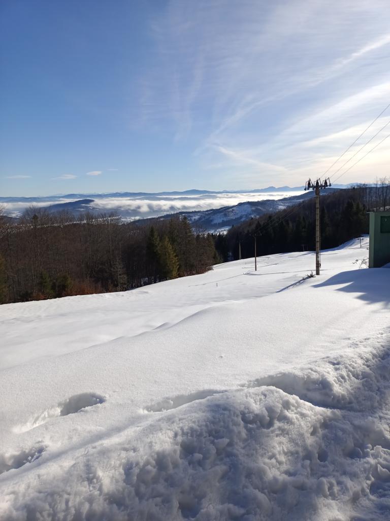 Středa je krizovým dnem, proto jsme se dopoledne vydali na turistický výlet na nedalekou chatu Kamenitý, kde jsme se kochali krásným výhledem a chvíli oddechu. Odpoledne jsme se však opět vrátili na svah, kde už všichni úspěšně zvládli jízdu na vleku.