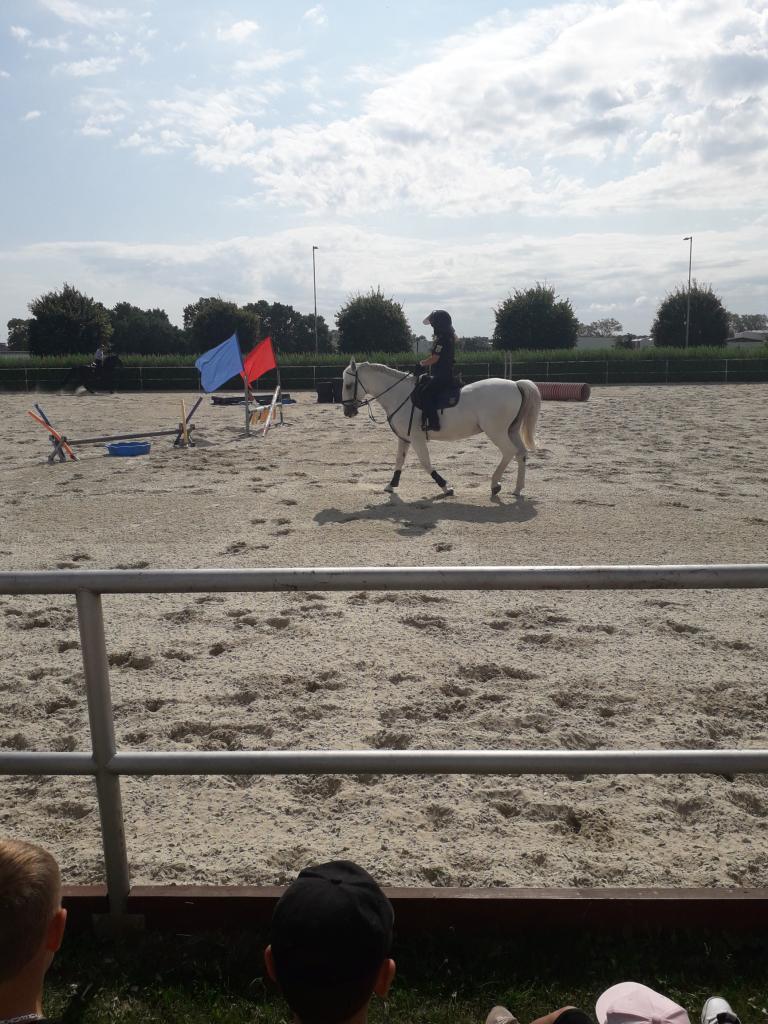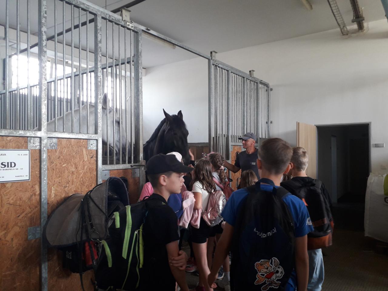 Po krátké svačině děti v areálu IZS navštívily koně městské policie. Viděly je nejen při tréninku, ale měly také možnost si je ve stájích pohladit a dozvědět se více o jejich péči a výcviku.