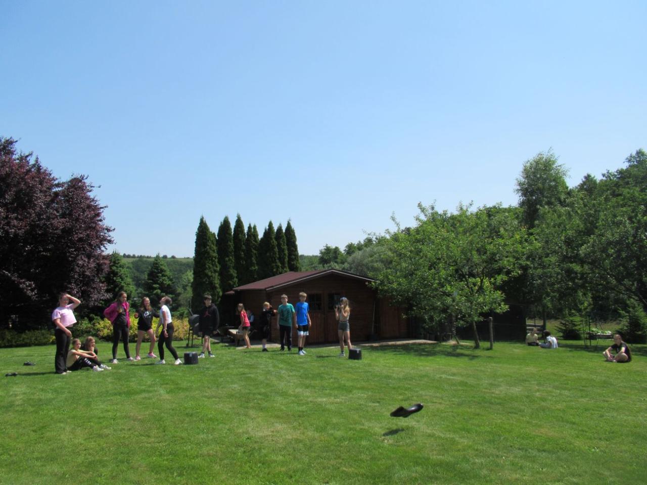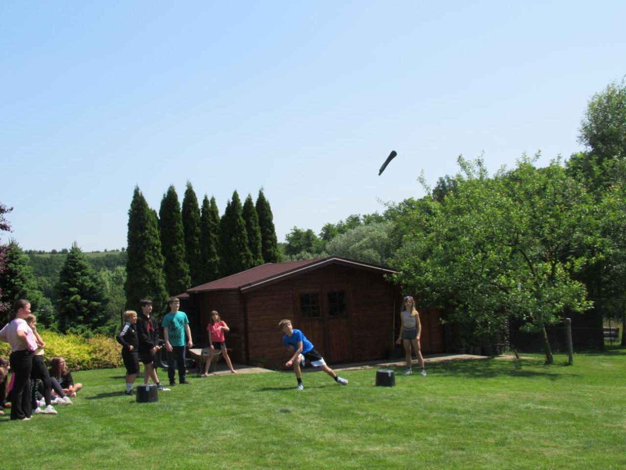 Najezení, namlsaní a odpočinutí jsme si i zasoutěžili – v jízdě s kolečkem i na kolečku, v hodu gumákem. Skvěle jsme se pobavili, a všichni zvítězili!