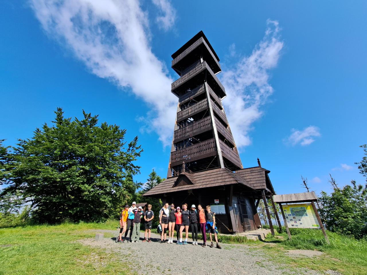 Na vrcholu si mohli odpočinout, občerstvit se a posilnit v tamní chatě. Společně se pak vydali na rozhlednu, odkud se jim naskytl nádherný výhled do širokého okolí – vidět bylo nejen okolní kopce a vesničky, ale i vzdálené vrcholky Beskyd. Mnozí si odtud odnesli nejen krásné fotografie, ale hlavně silné zážitky.